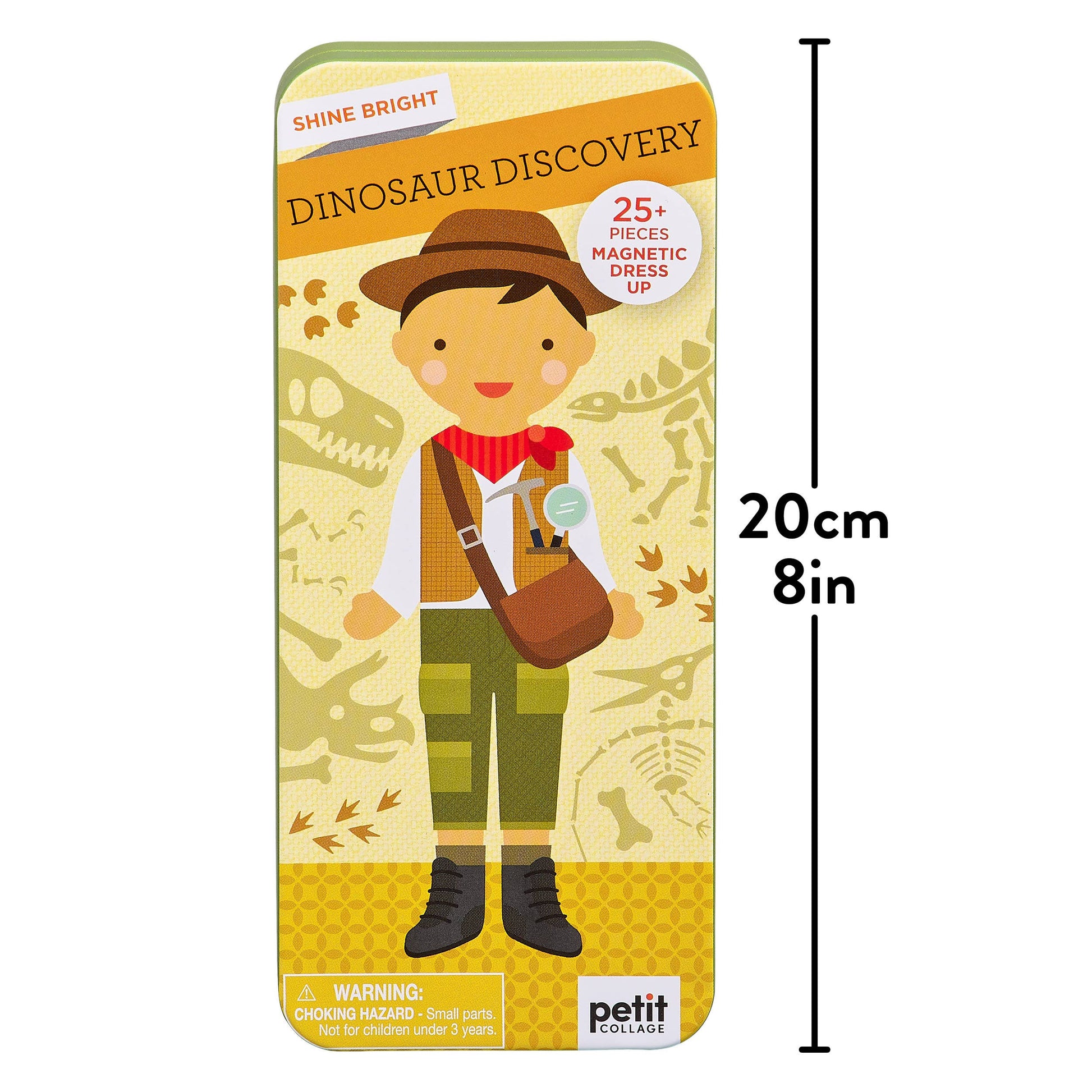 Discoverer, explorer, curious. Inspire your little adventurer to become a paleontologist with this Dinosaur Discovery Shine Bright Magnetic Play Set from Petit Collage. Featuring 2 scenes and 25+ magnetic pieces in a portable tin, this set is designed for hours of imaginative play, whether at home or on-the-go. Perfect for ages 3+, our Shine Bright Magnetic Play Sets are designed to encourage children to dream big and shine bright!