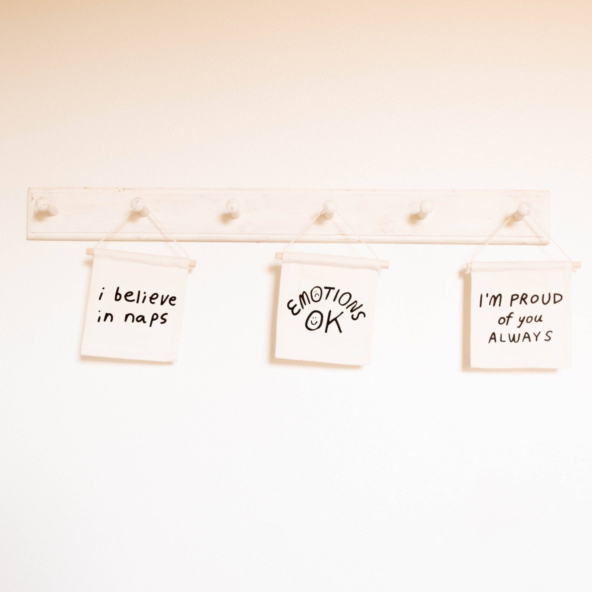 "I'm proud of You Always" hang sign on natural canvas with a poplar wooden dowel. Sewn and screen printed by hand on natural canvas by empowered artisans in Mombasa, Kenya.